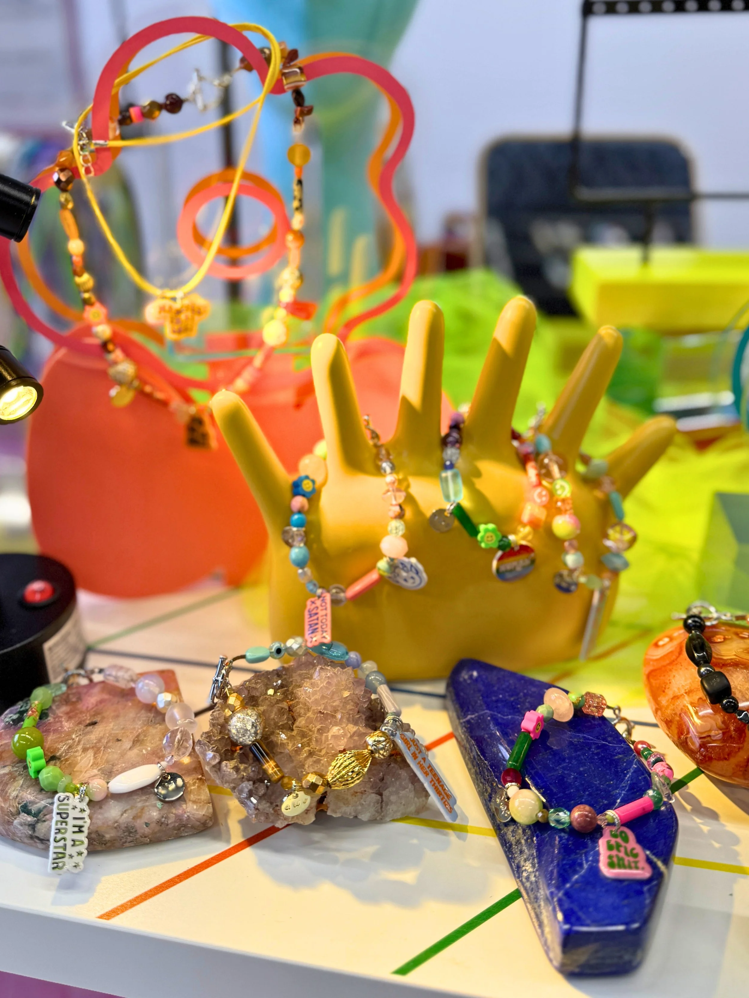 At Shop, Aweness exists to help you remember who you were before the world told you to be small. We don’t make jewelry—we make energetic tools for the modern soul seeker who swears, spirals, and still shows up. Our cheeky limited handmade jewelry features crystals, semi-precious stones and vintage beads that help you express your truth.